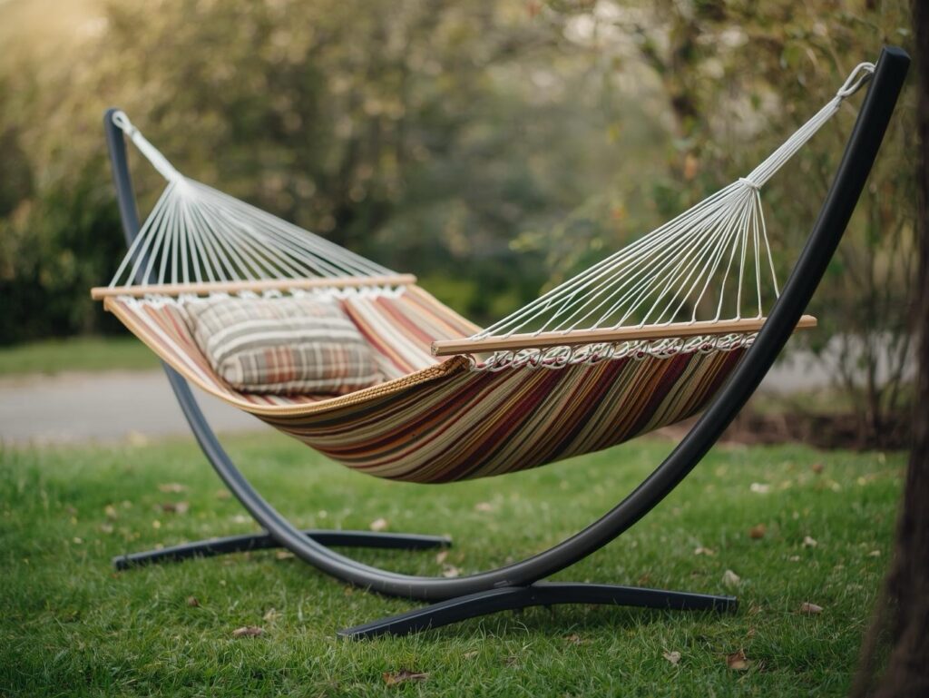 最大のデメリットは「スペースの確保」です。一般的なハンモックは全長が2〜3メートルほど必要で、リビングや寝室に置く場合は家具の配置を工夫しなければなりません。特に賃貸マンションでは壁や天井に穴を開けることが難しいため、自立式タイプを選ぶのが現実的です。
