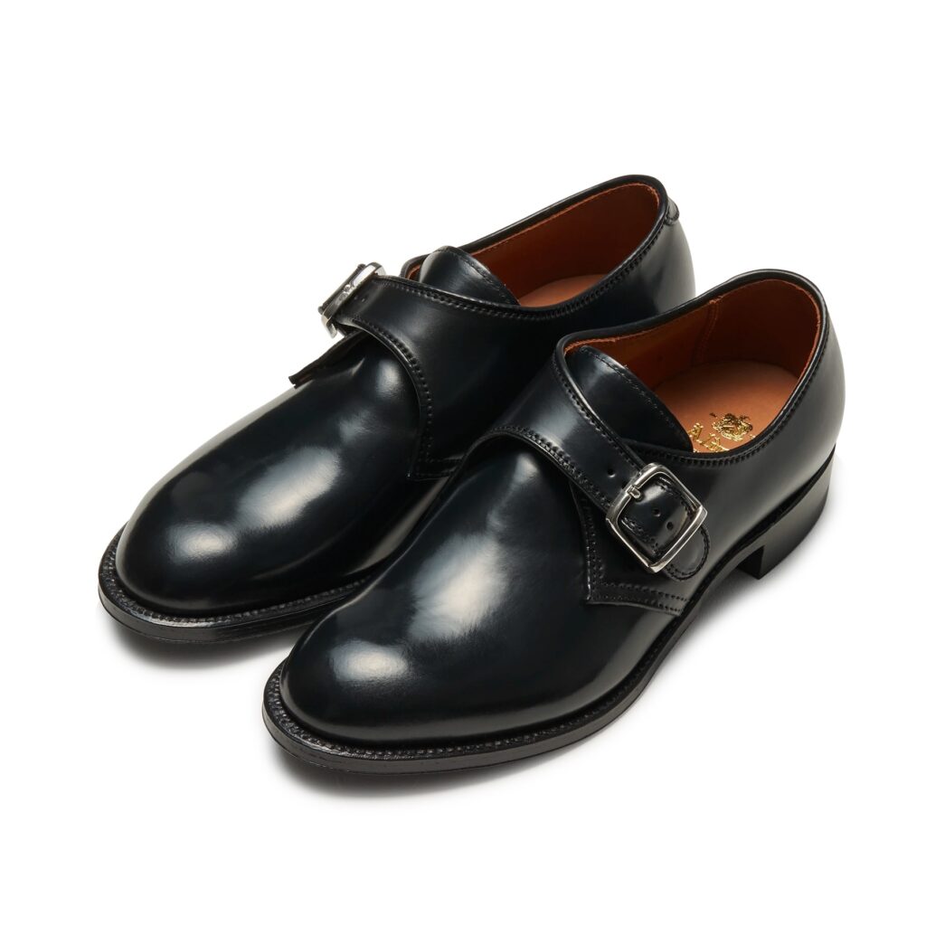 シューレース(靴紐)の代わりに金具付きストラップで留めるのが「モンクストラップ」。中でもシンプルな「シングルモンク」は、洗練された印象を持ちながらビジネスにも対応可能です。ヨーロッパでは修道僧(モンク)が履いていたことから名付けられました。