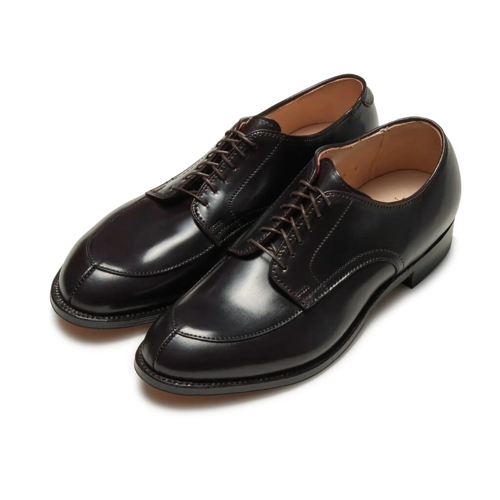 Uチップの一種で、縫い目がV字を描くデザイン。甲が高めで日本人の足型に合いやすく、履き心地も良好。カジュアルなジャケパンや休日のスタイルに取り入れやすい革靴です。