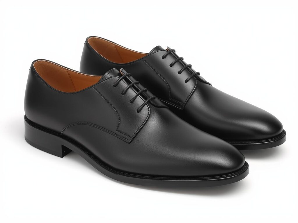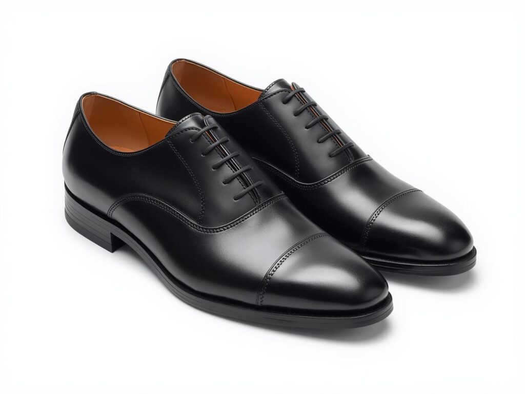 革靴の中でも最もフォーマルとされるのが「ストレートチップ」です。つま先部分に一本の横線(キャップ)が入っているのが特徴で、シンプルながら格式があり、冠婚葬祭・公式行事・大事な商談に最適です。
