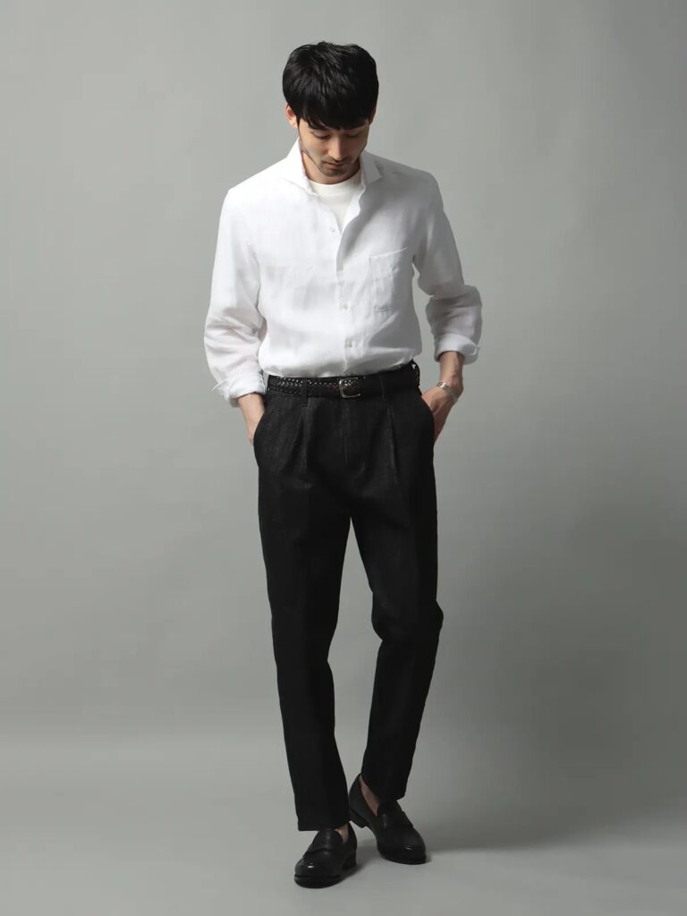 リネンシャツは幅広いボトムスと相性が良いのも魅力です。